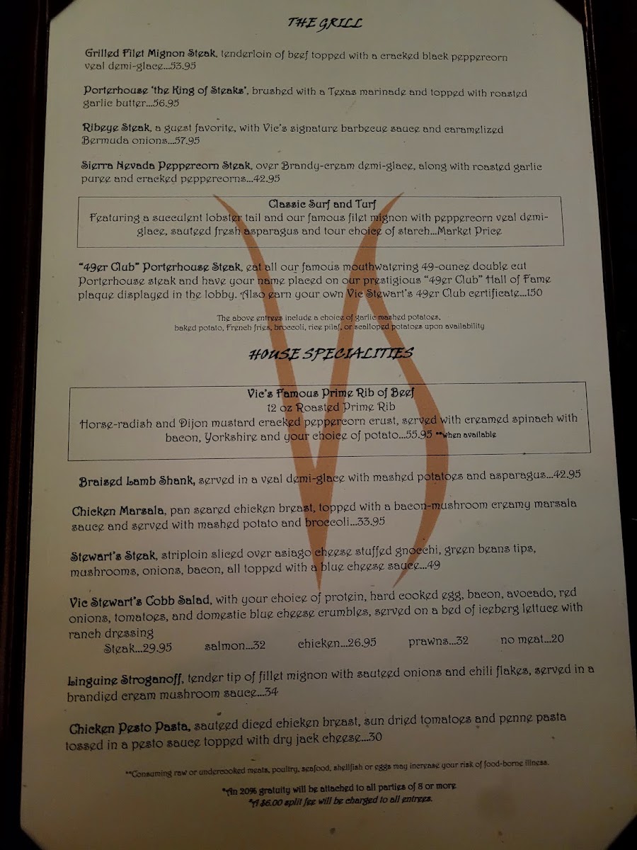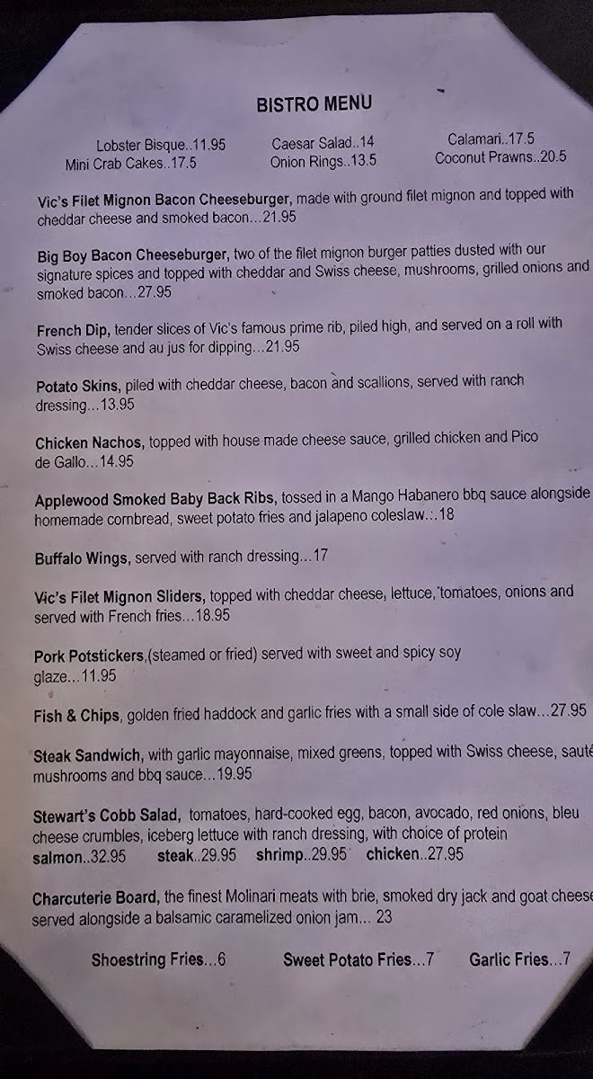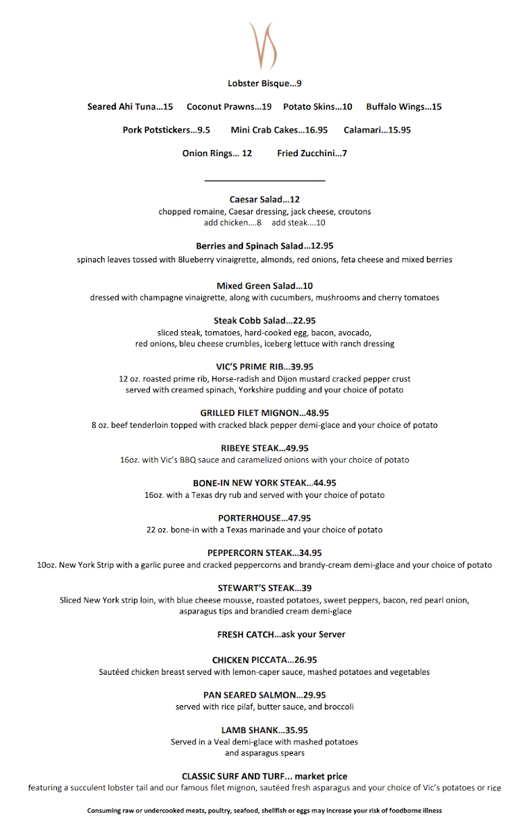 Known for its exceptional quality and inviting ambiance, Vic Stewart's combines the elegance of a fine dining restaurant with the warmth of a neighborhood bistro. The moment you step inside, you’re greeted by a charming decor that balances sophistication and comfort, perfect for both celebratory dinners and casual family gatherings. Some reviewers describe the atmosphere as delightfully intimate, though a tad dim, adding to the cozy, inviting dining experience.